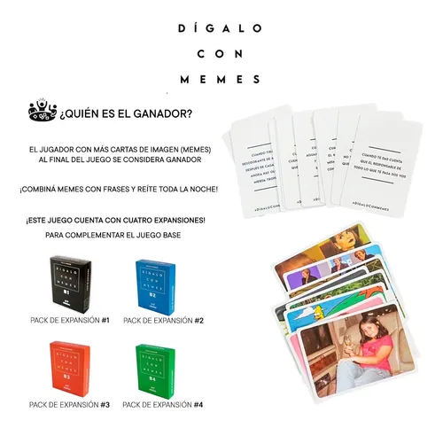 DÍGALO CON MEMES CONTIENE 80 CARTAS DE IMAGEN Y 240 CARTAS DE SITUACIÓN CON VARIAS FRASES.