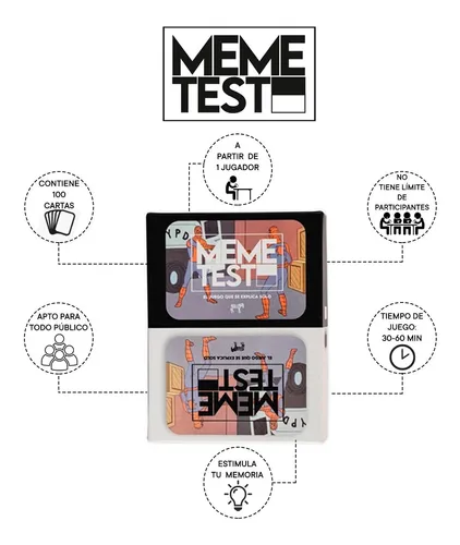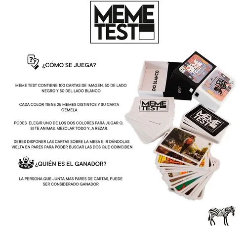 MEME TEST CONTIENE 100 CARTAS DE IMAGEN, 50 DE LADO NEGRO Y 50 DEL LADO BLANCO.